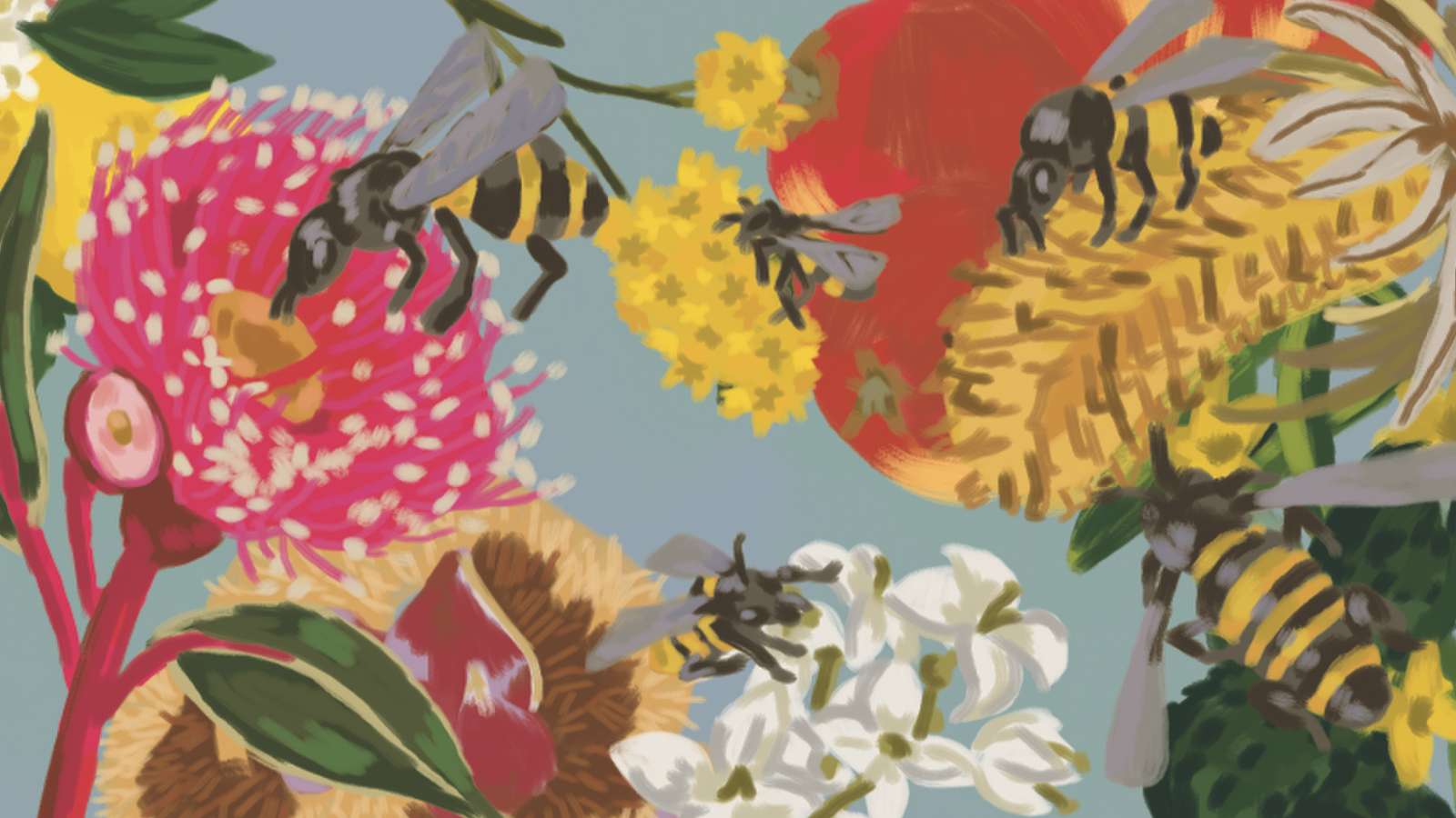“Through my digital illustration, I painted bees alongside Australian flora to display how they interact with nature as they pollinate. I went with a painterly approach to showcase the swift nature of bees and what their view of the world is.”