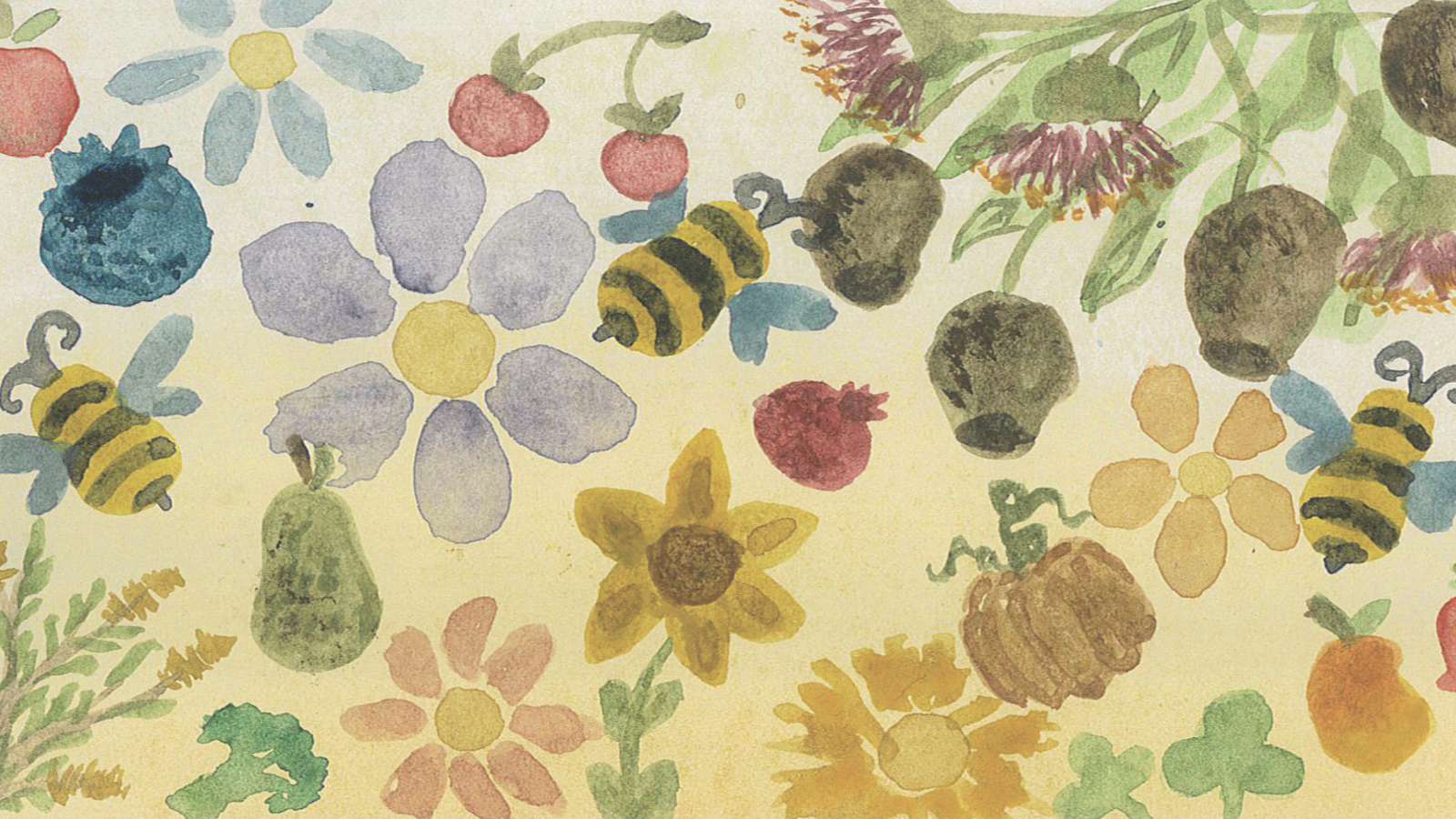 “I have painted flowers, including native flora (Banksia and Flowering Gum), and fruits and vegetables that require pollination by bees to grow food for us to eat.”